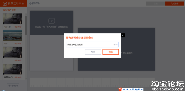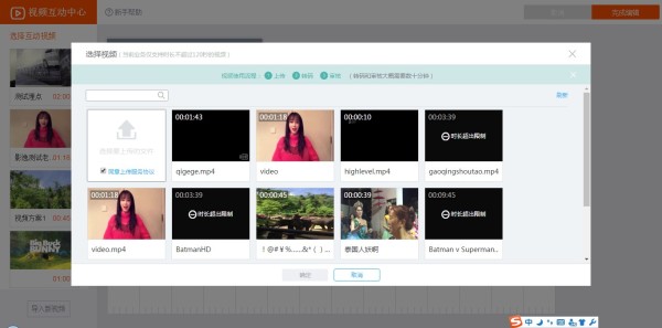 3、视频上传、转码、审核通过后,选择视频添加到互动编辑界面中。并对互动方案命名。