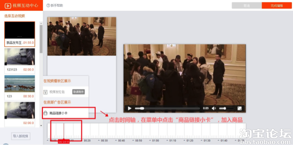 4、点击时间轴,在菜单中点击“商品链接小卡”加入商品