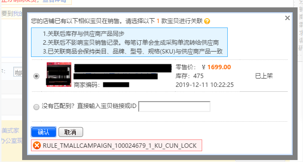 分销商关联商品提示:RULE_TMALLCAMPAIGN_*
