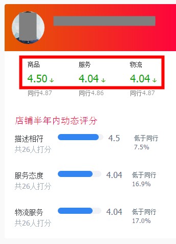 用户均可在店铺首页查看到该店铺的DSR,同时卖家可在天猫后台查看到自己店铺的DSR数据。