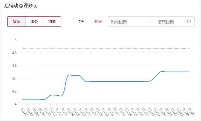 (2)商家中心-交易管理-客户之声(超链),目前可查看到一定时期内本店铺与大盘的DSR对比情况等。