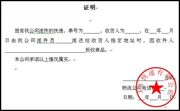 亲,需要商家提供买家无理由拒签的物流公司提供红章凭证,证明内容需满足以下要求: