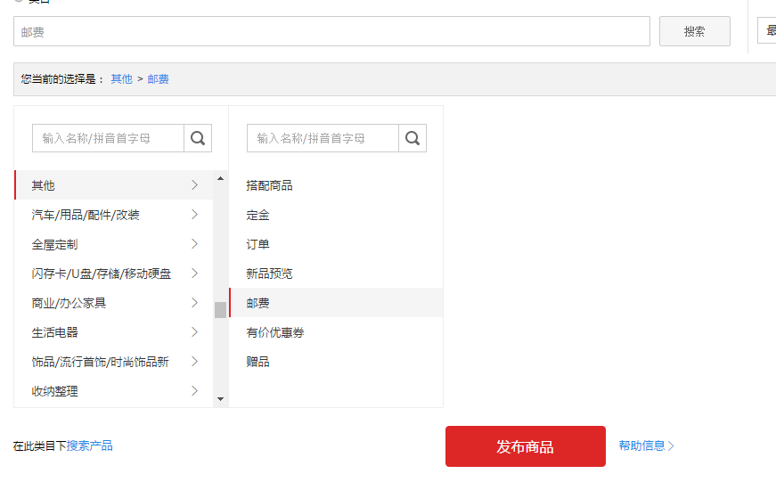 其他这个一级类目下的邮费、新品预览、定金、赠品、订单、搭配商品等这几个二级类目的商品在搜索端都不展示,且不开放评价入口,也不收取天猫佣金,销售额不计算在技术服务年费指标中。若需要买家支付补邮费费用请单独旺旺发送邮费链接,并在商品的标题、图片、描述等方面都进行清晰说明。