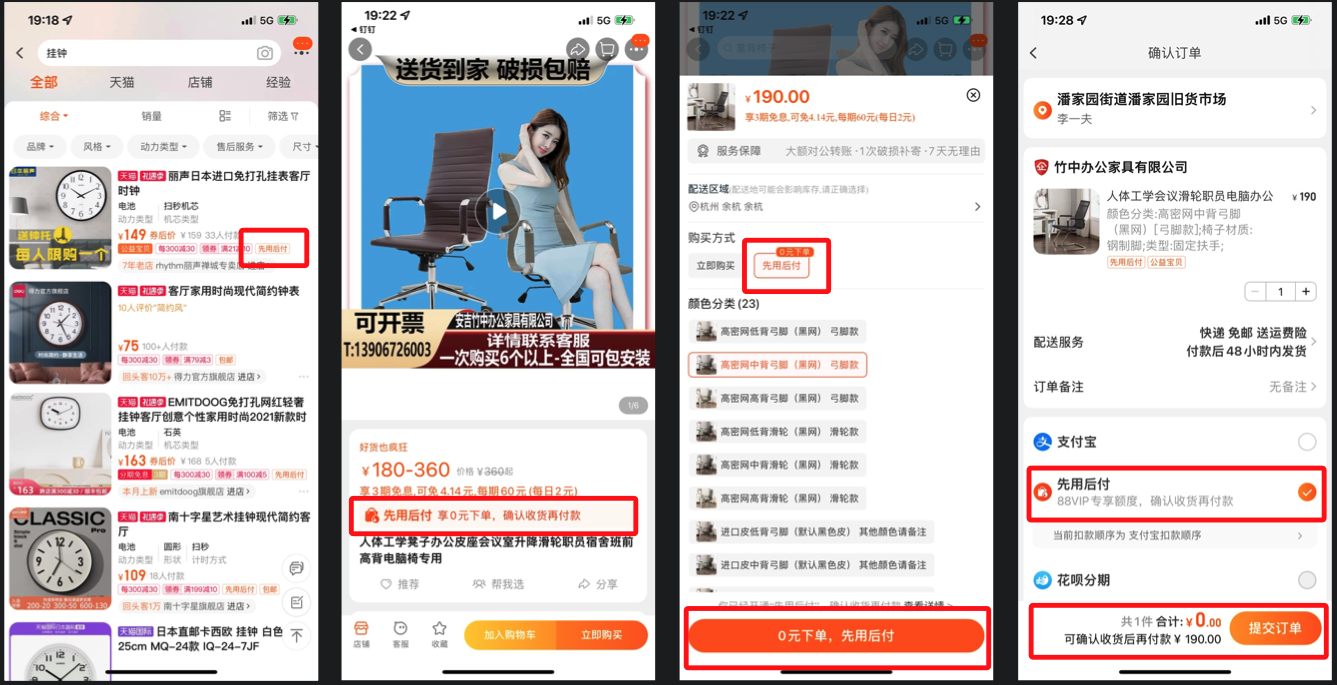 使用先用后付下单后,系统将好提示到期付款的截止时间,消费者需要在系统提示的到期付款前完成主动付款。对于商家而言,这种新的购物模式打消了消费者线上购买前需要付款的心理顾虑,提升了服务体验,能提升商品转化也为商家带来了新的用户。 (先用后付活动不收费)