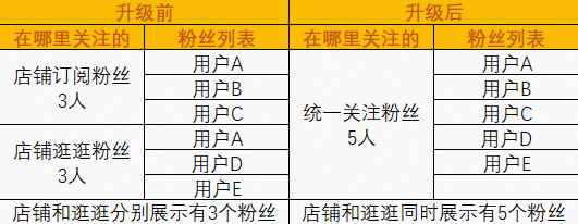 3月24日起,原”订阅“将升级为”关注“,整合关注关系,店铺粉丝数量可能会有变化,属于正常现象。升级前:店铺粉丝为点击店铺【订阅】按钮的粉丝数;升级后:店铺粉丝为店铺粉丝、店铺主播间粉丝、店铺逛逛粉丝的去重之和。举例: