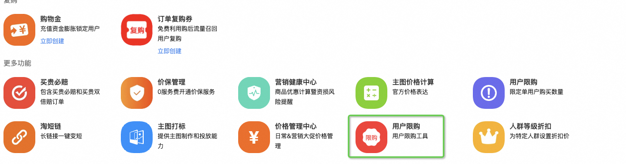 A:用户限购产品,商家在日常可以一直正常使用,都会正常生效(除上面提到的特殊类目和商品外)