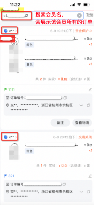 买家昵称搜索能力不变,买家昵称搜索框输入完整的买家昵称可筛选该买家的所有订单(列表还是脱敏的昵称)
