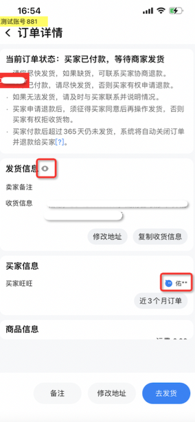 为更好的保护消费者隐私,买家会员名作为敏感字段,平台不再完整展示,商家中心将对商家订单中的买家会员名字段脱敏展示。买家的收货信息不影响查看,在订单详情页点击【隐藏】按钮进行查看。