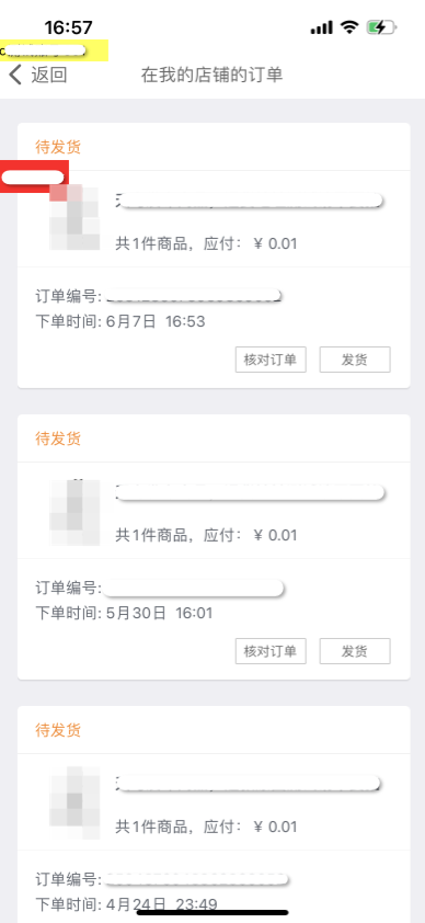 列表昵称脱敏,但仍可通过搜索具体昵称进行订单查询
