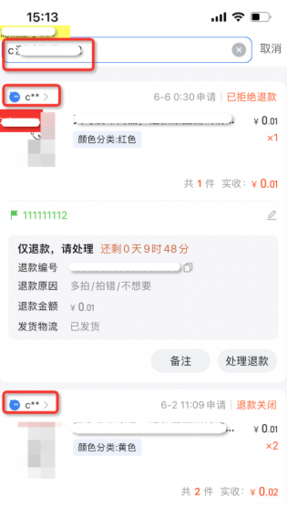 脱敏状态下可直接筛选买家订单(参考下图),但筛选结果页的买家昵称搜索框内容为空(实际搜素结果均为此买家的订单)